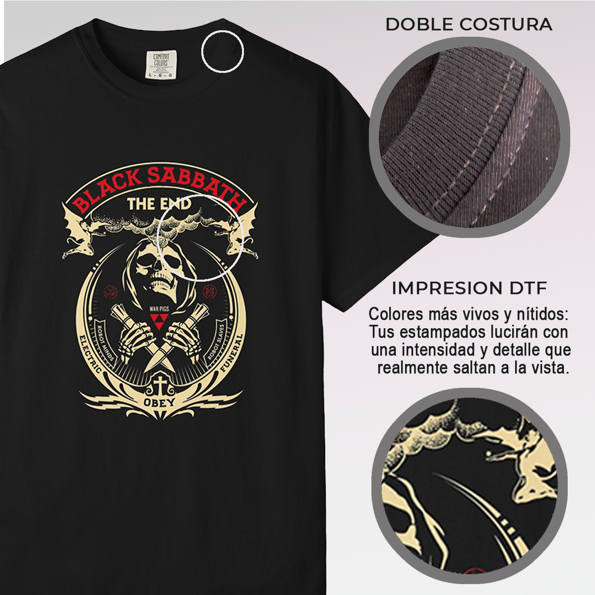 Llevate una remera icónica que celebra la última era de Black Sabbath. Su diseño impactante resalta una calavera en estilo oscuro y ceremonial, acompañada de símbolos clásicos y los elementos más representativos de la banda. Es una prenda pensada para fanáticos que buscan algo más que ropa: buscan identidad, actitud y la vibra auténtica del heavy metal.