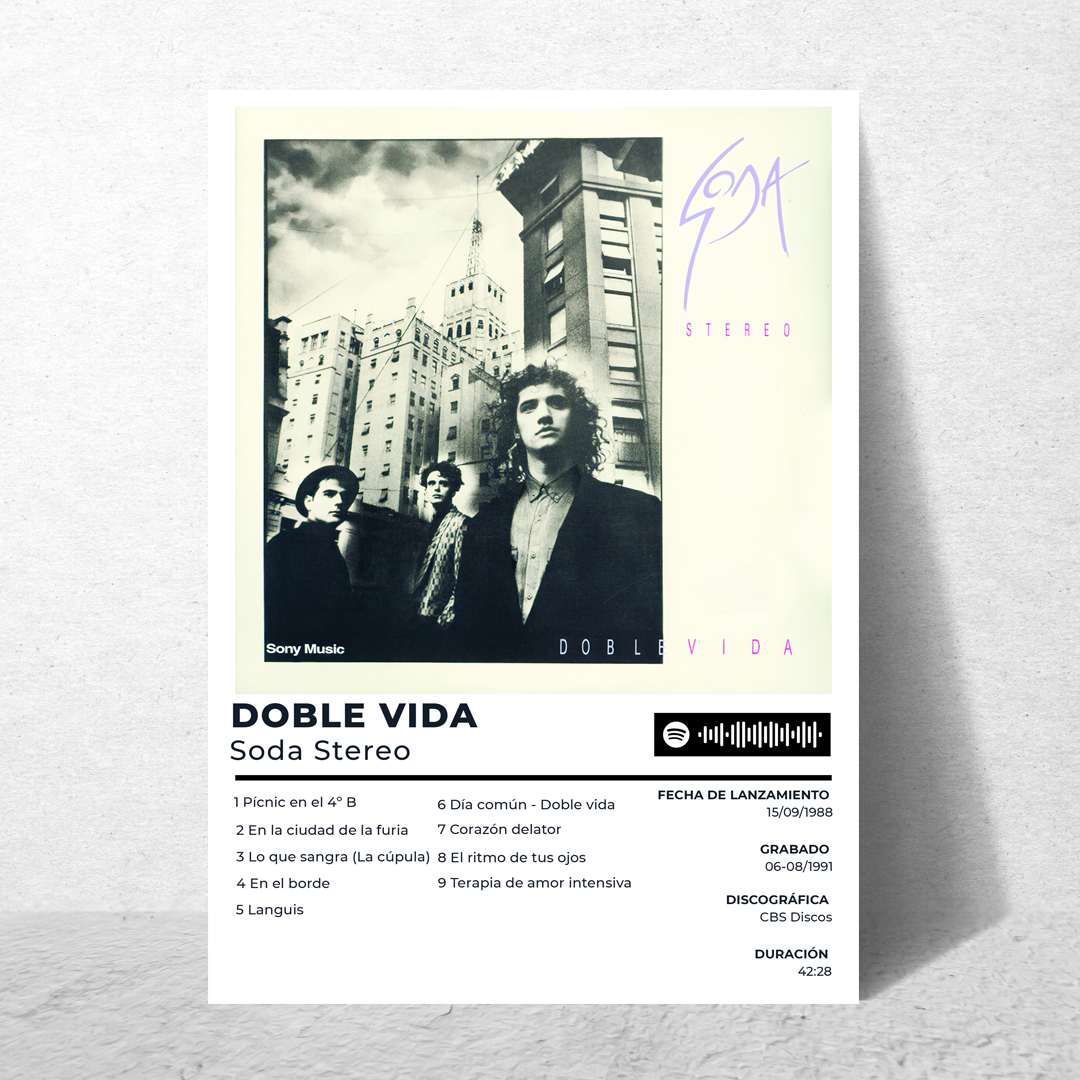Diseño basado en el álbum Doble Vida, con lista completa de temas y datos del disco.